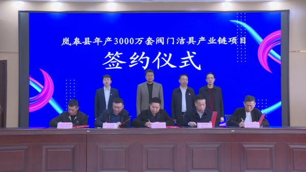 簽約儀式上,六口工業園區、縣財政局分別與安康盛泰嘉恒閥門有限公司、陜西福源華圣閥門制造有限公司、安康進爾博水暖設備有限公司、安康佰德利閥門制造有限公司、安康騰陽瑞裕機械制造有限公司、安康尚億流體科技有限公司、安康錦鵬杭汽配件制造有限公司、安康錦盛峰裕科技有限公司、安康玉嵐天一銅業有限公司簽訂年產3000萬套閥門潔具產業鏈項目。